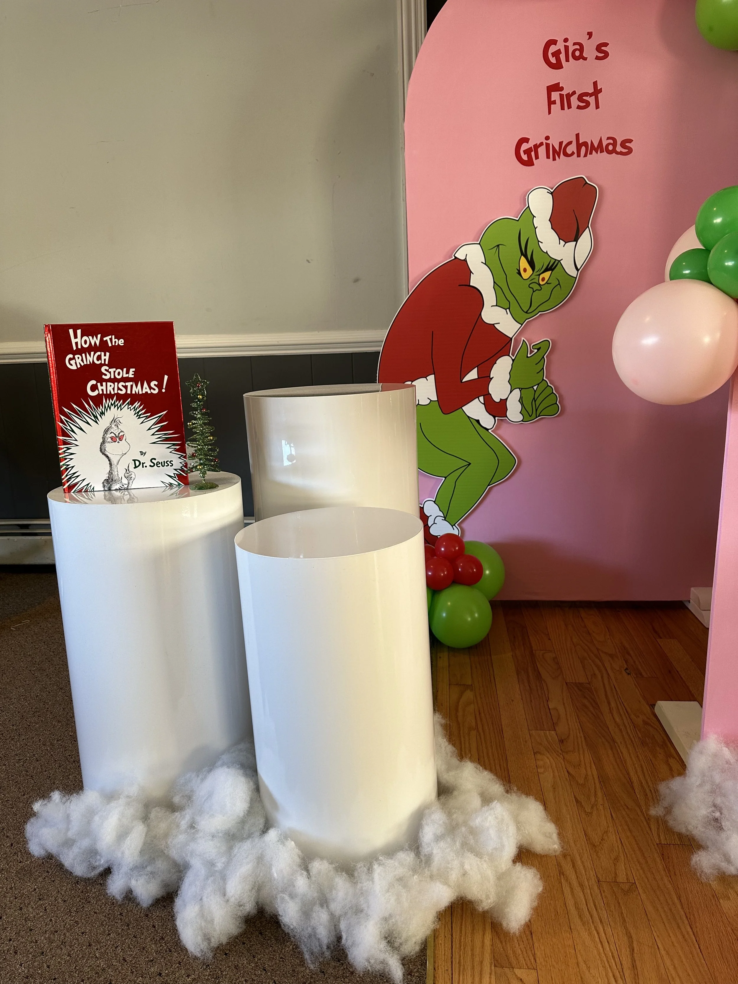 5 available in ascending size order. Pedestal height ranging from 1.5ft to 3.5 ft. May rent one or multiple.